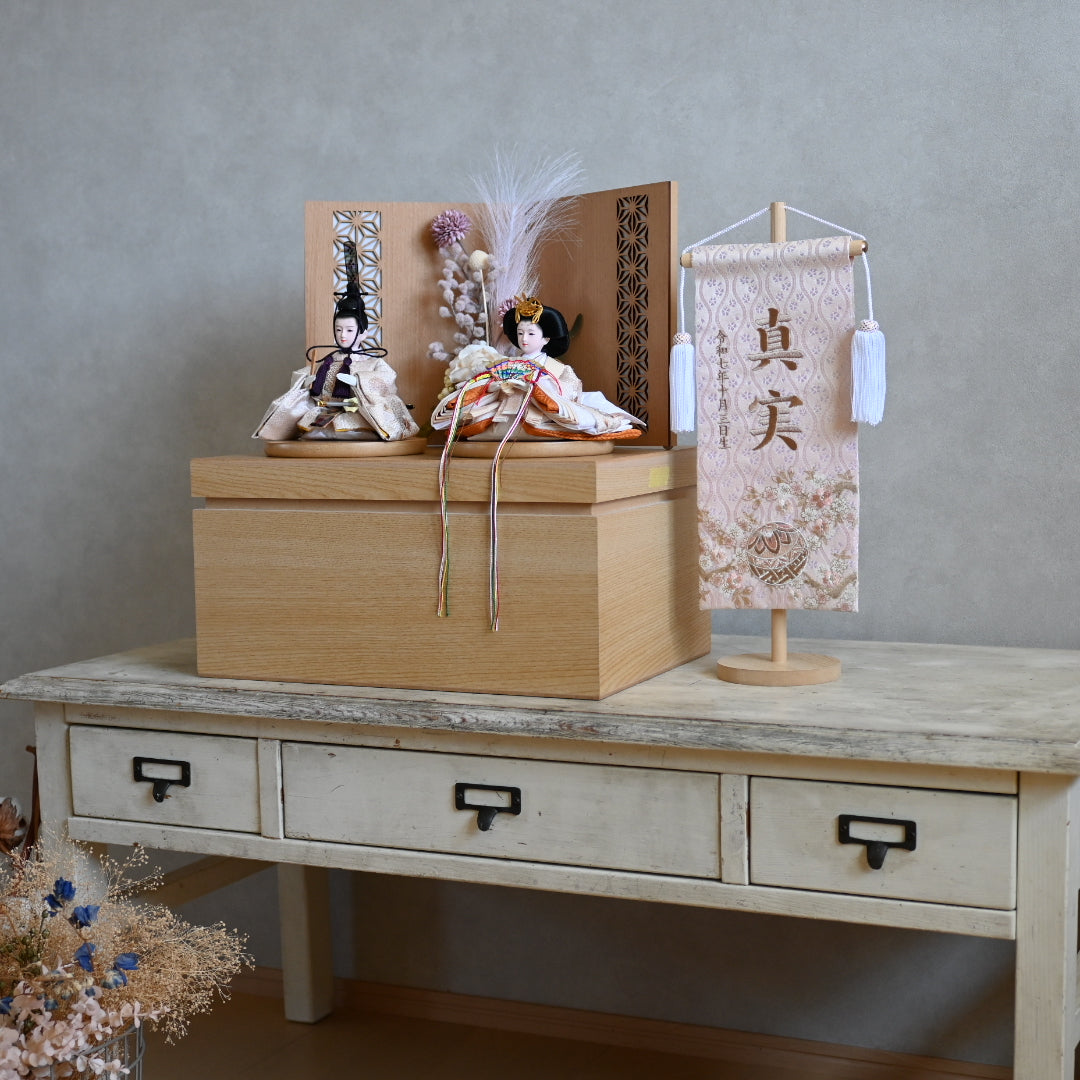 【くすみカラーが可愛い】コンパクト収納雛飾りセット