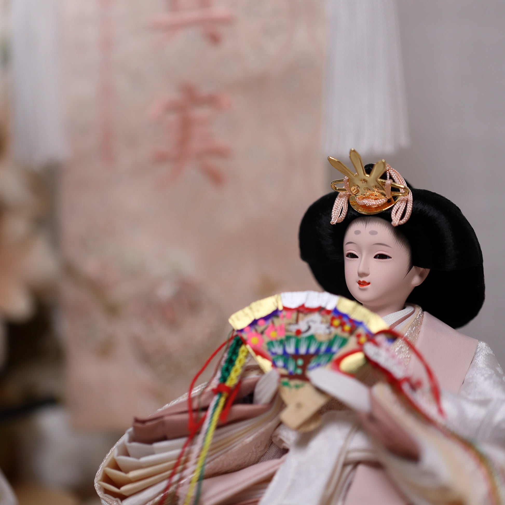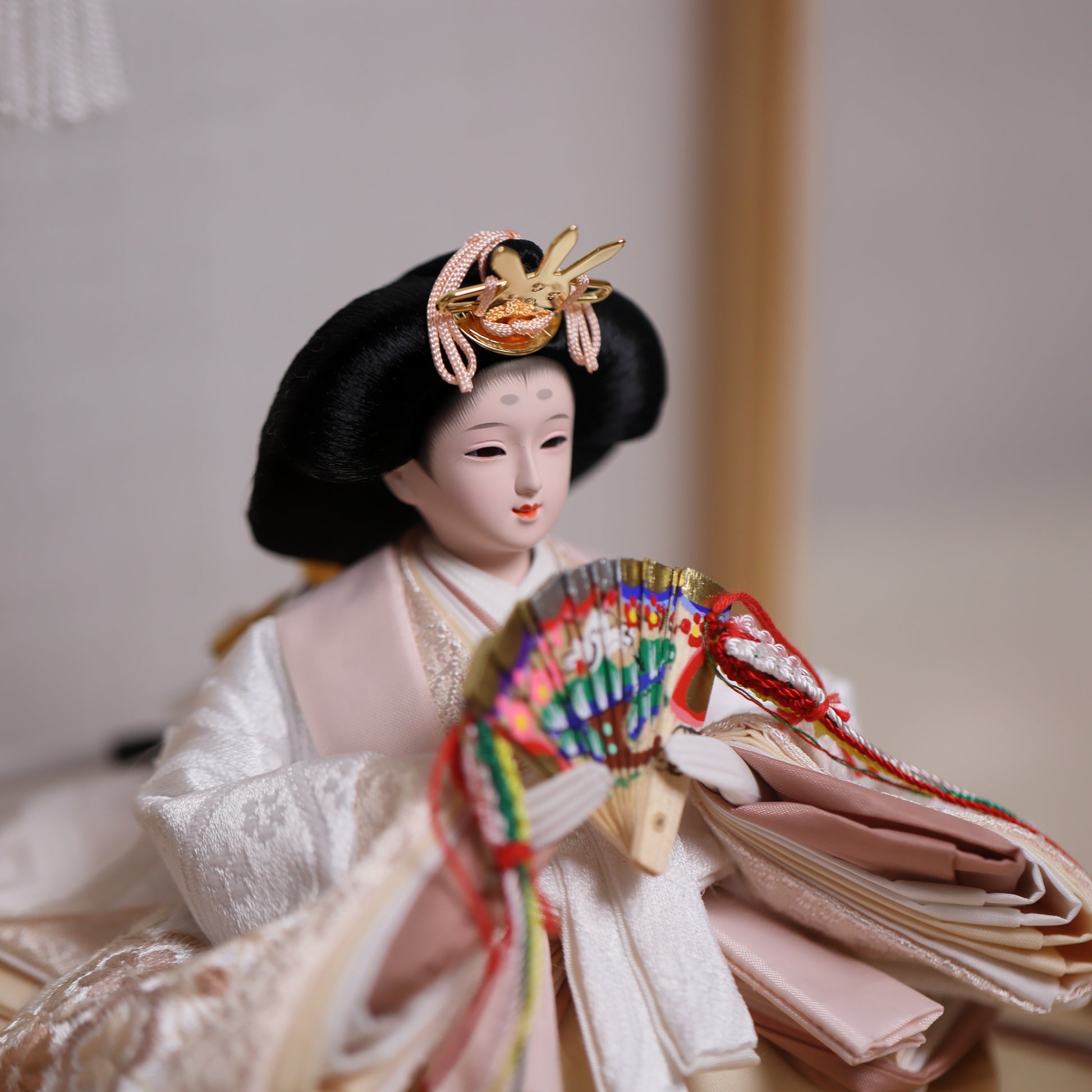 お顔立ちは柔らかく可愛らしく、衣装には繊細な金彩と刺繍を施しました。