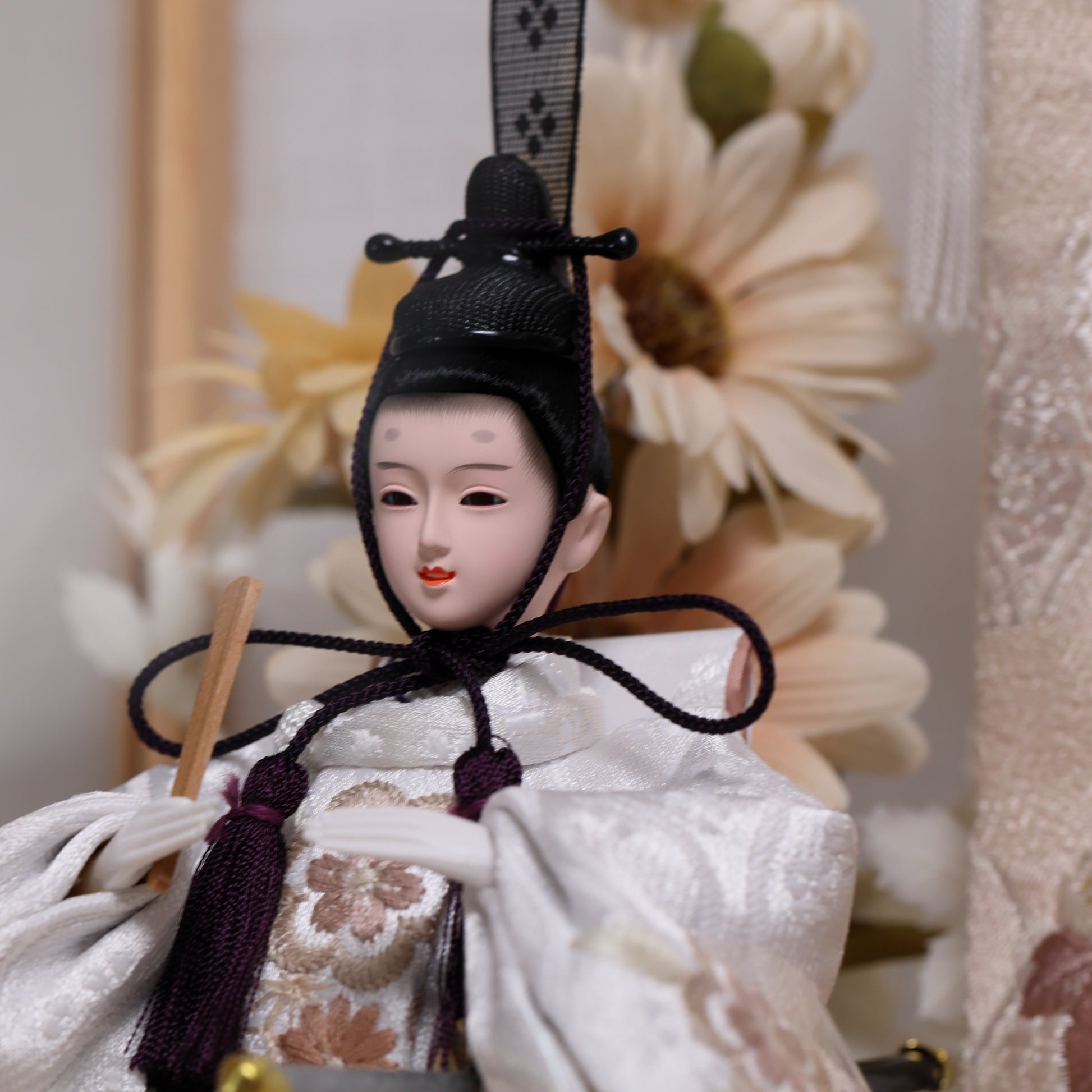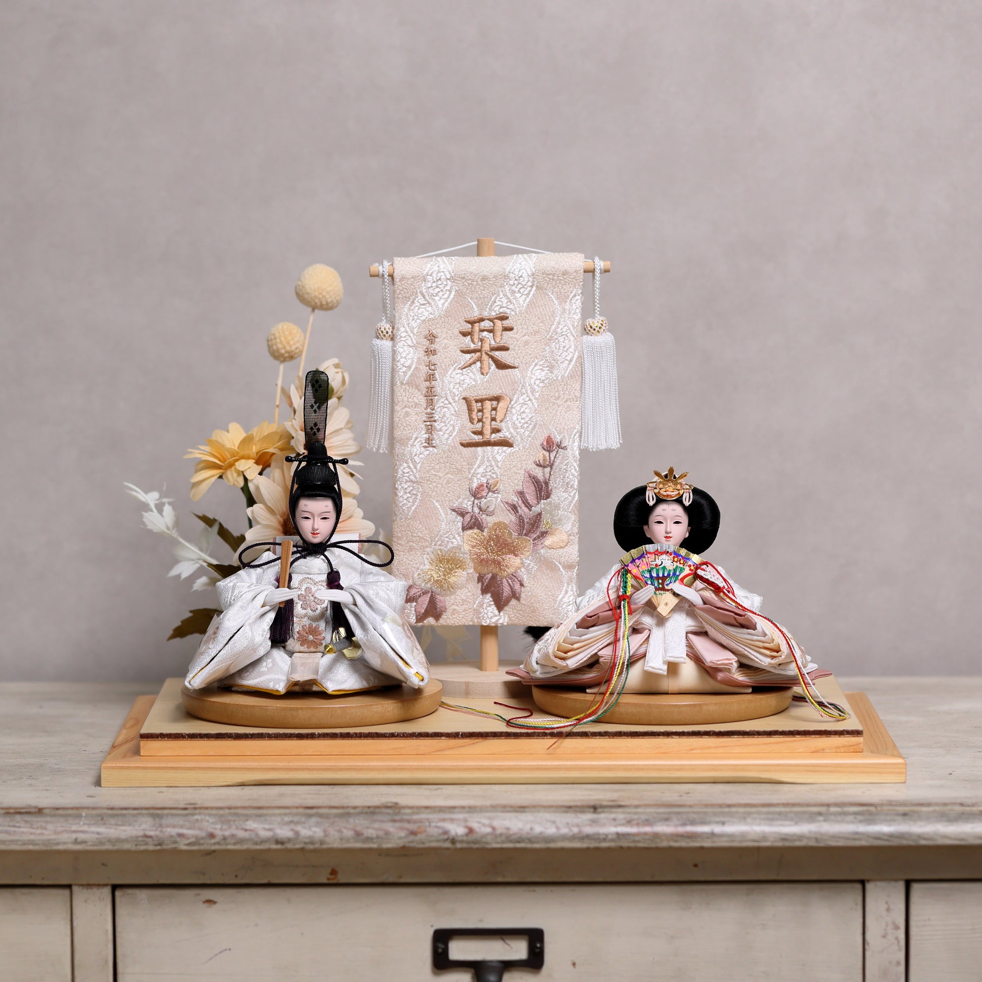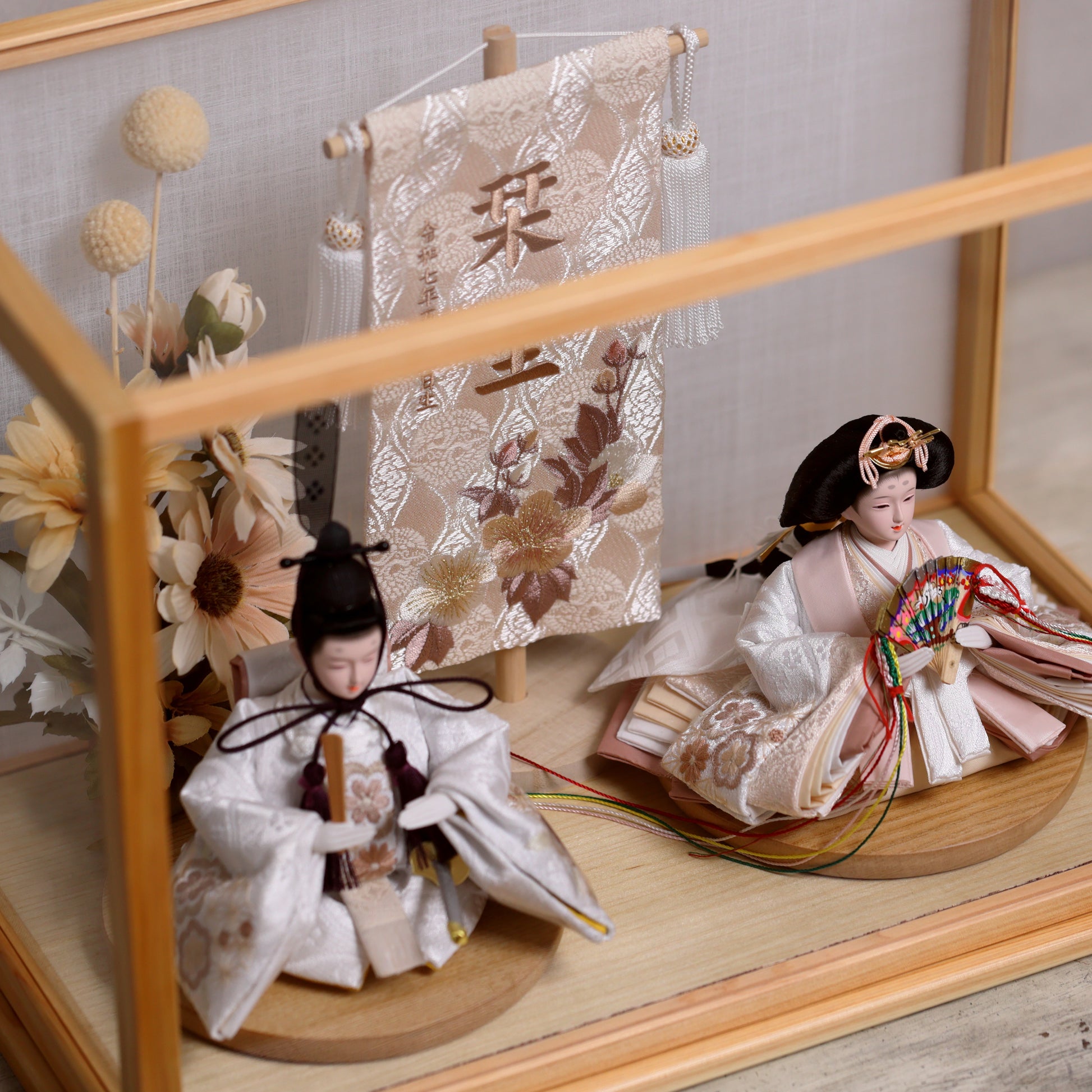 【くすみカラー×手刺繍風 麻柄刺繍雛】コンパクトdeケースに飾るひな人形♪