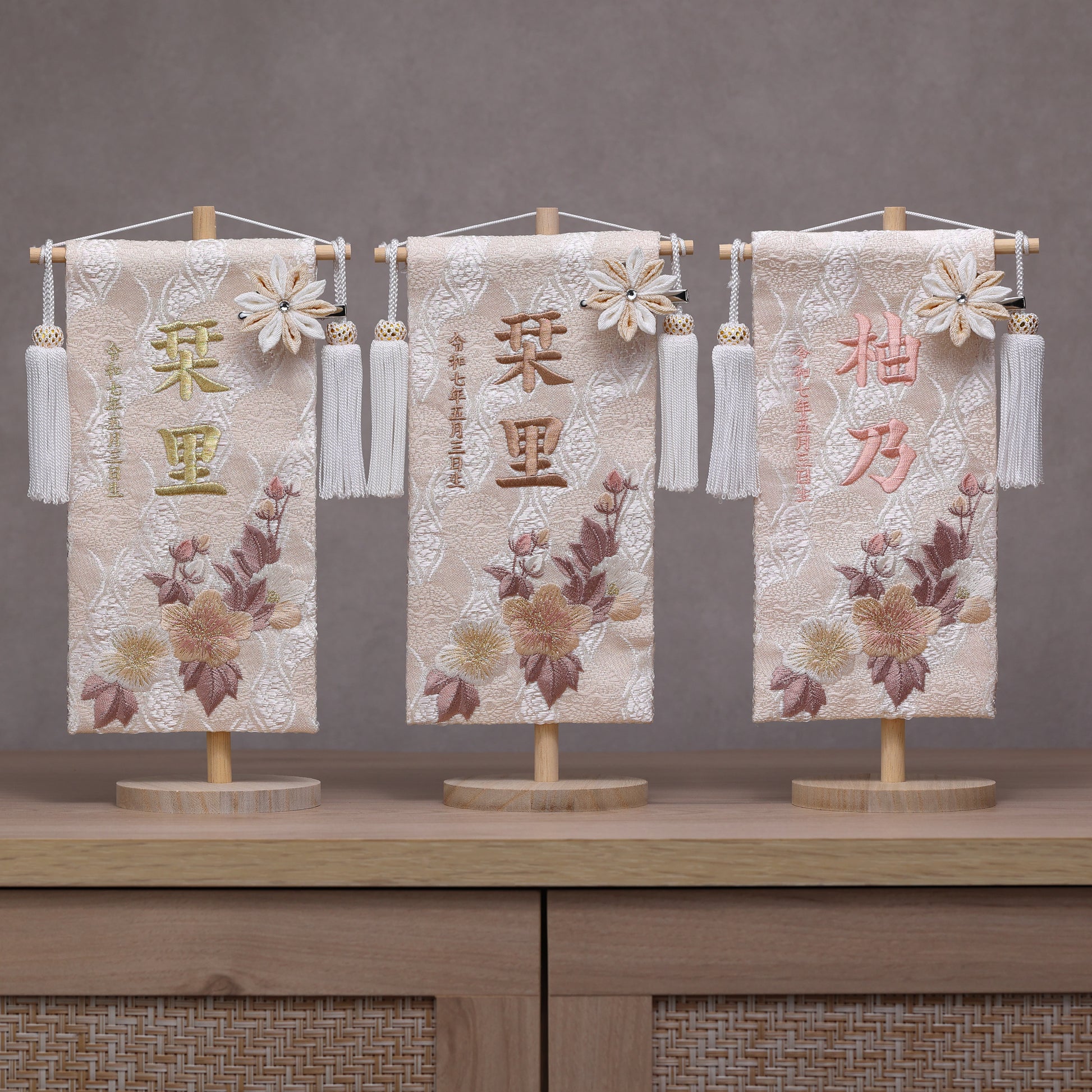 ●お名前旗に付けている『つまみ細工の花飾り』