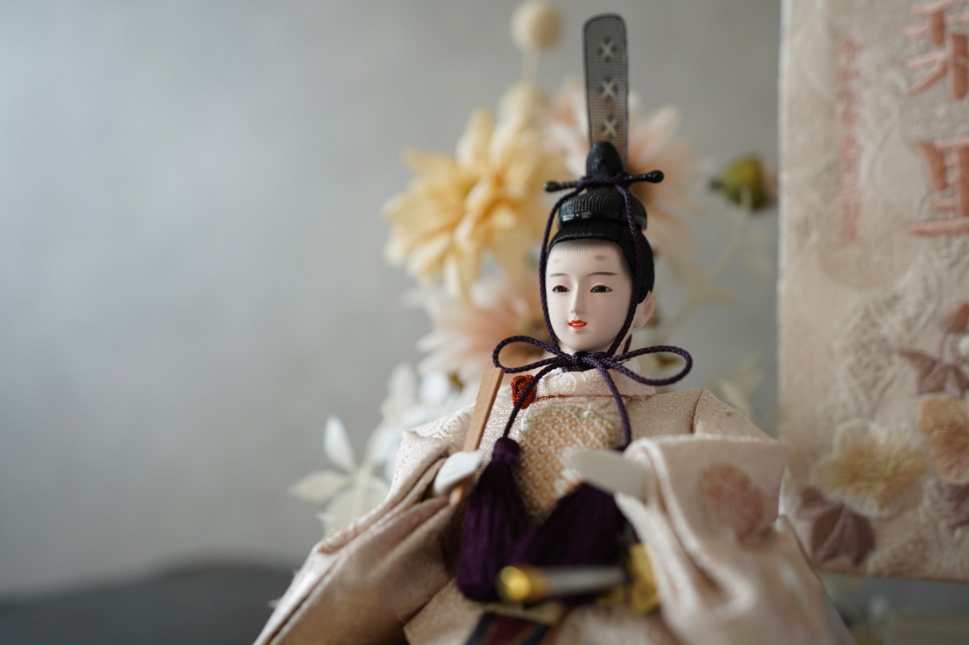 【くすみカラー×雪輪桜 刺繍雛】コンパクトdeケースに飾るひな人形♪