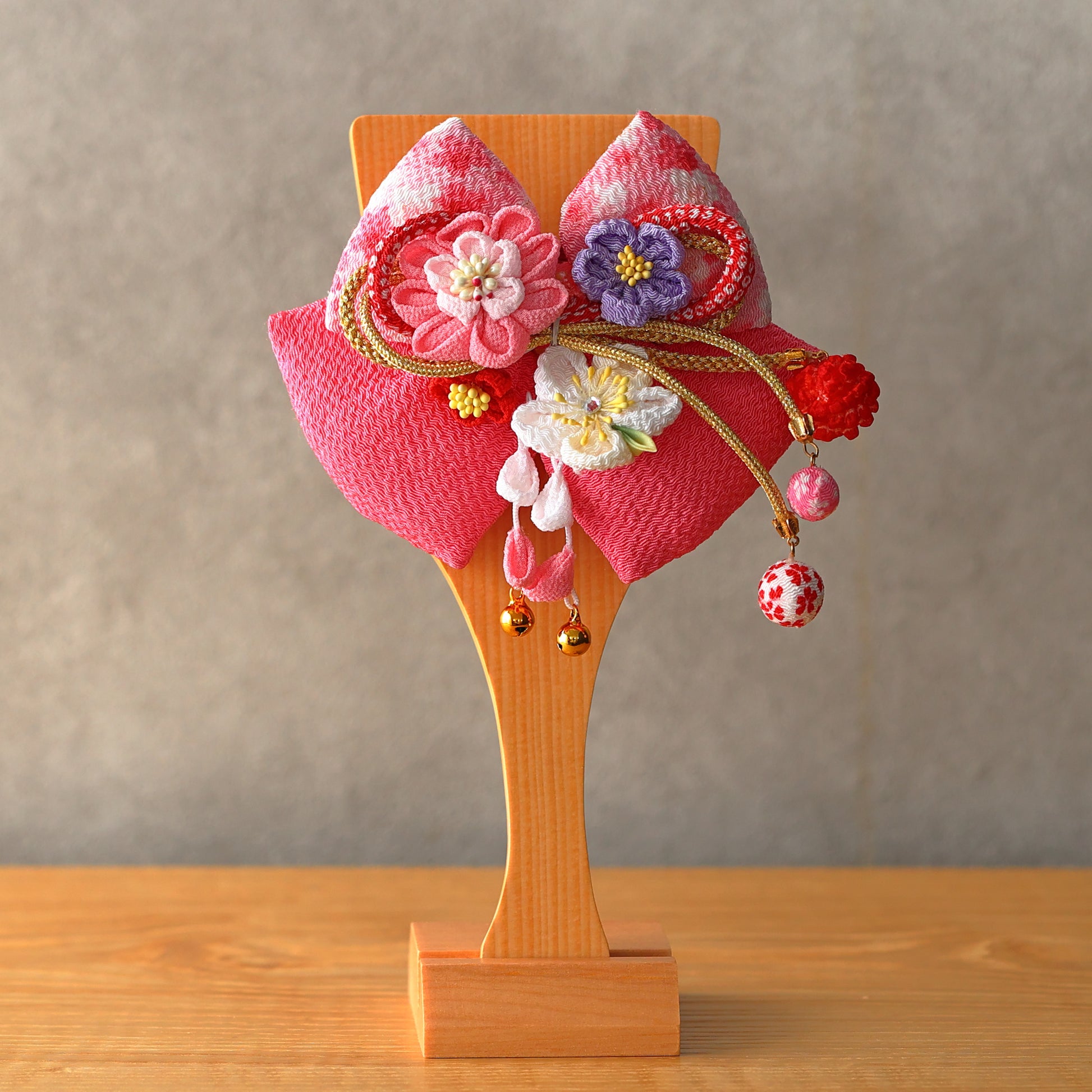 ちりめん髪飾り羽子板 板立飾り ピンク