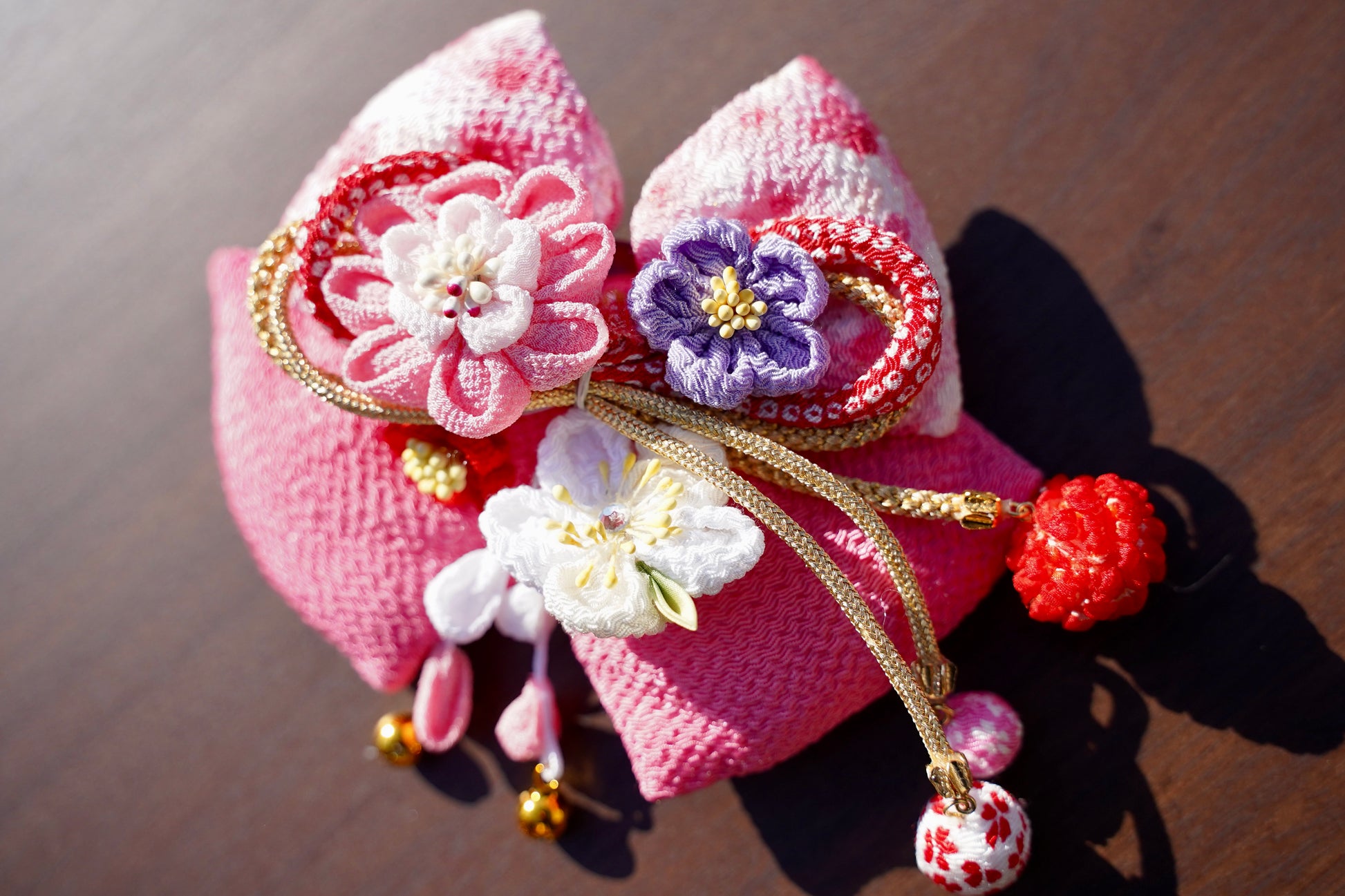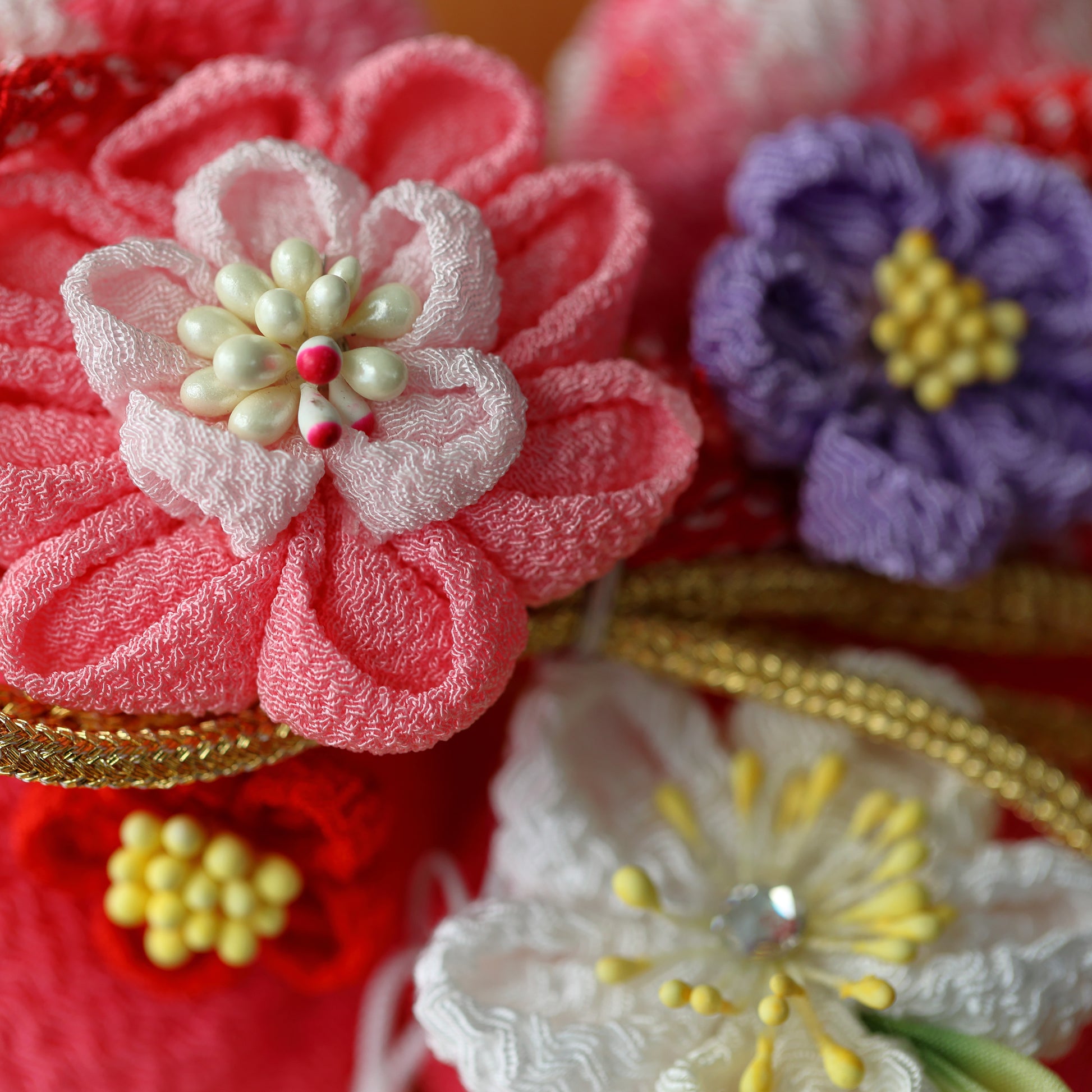 羽子板に飾る ちりめん髪飾り