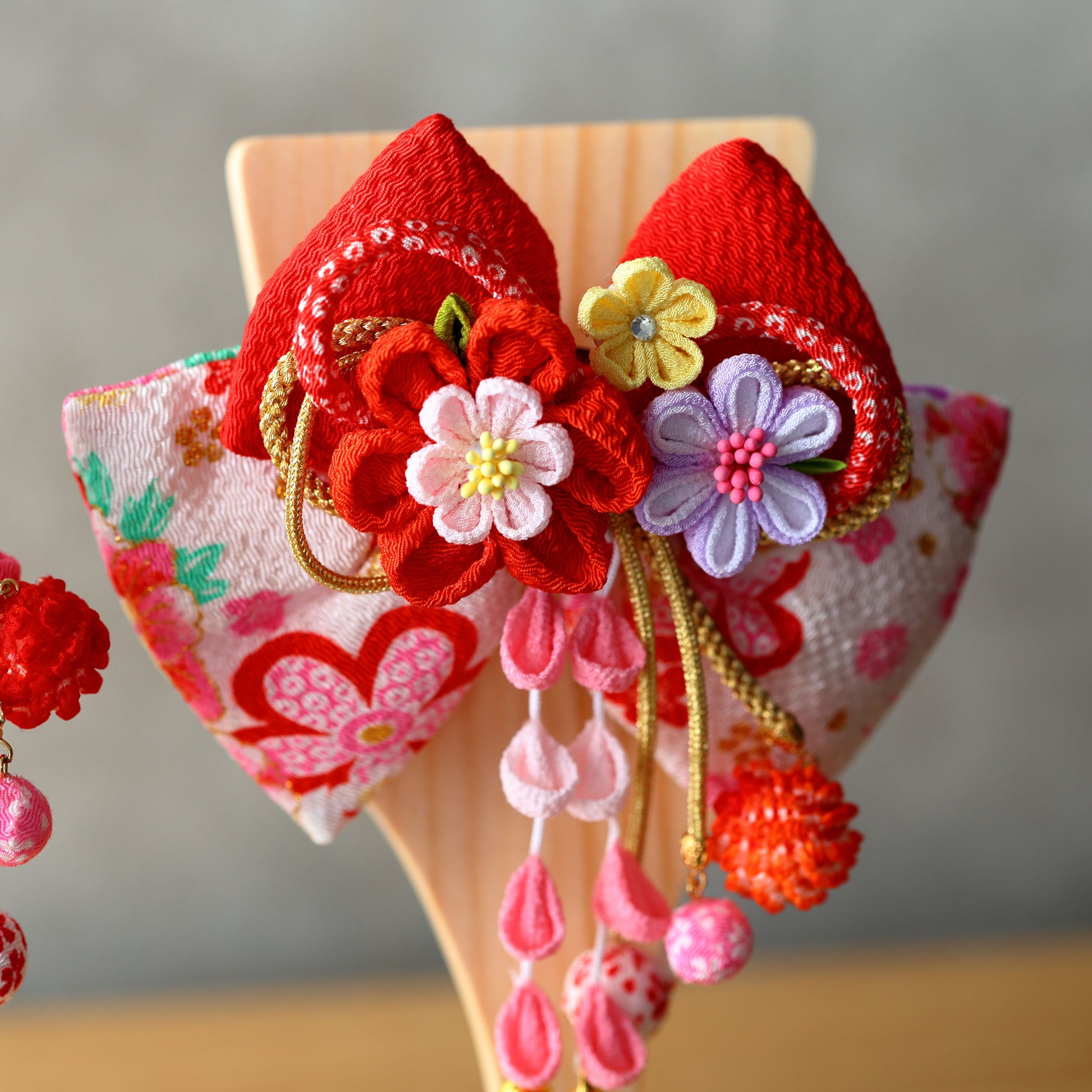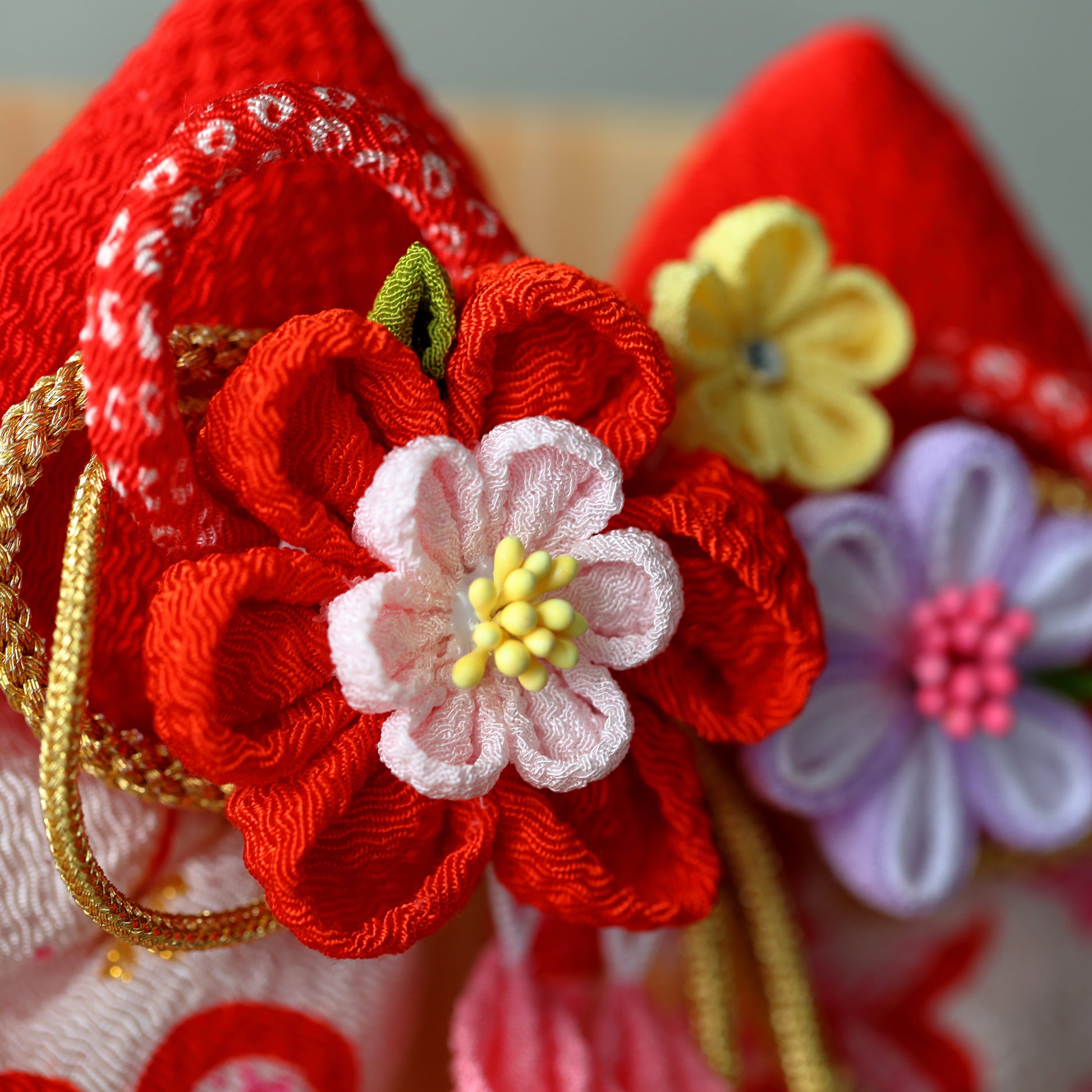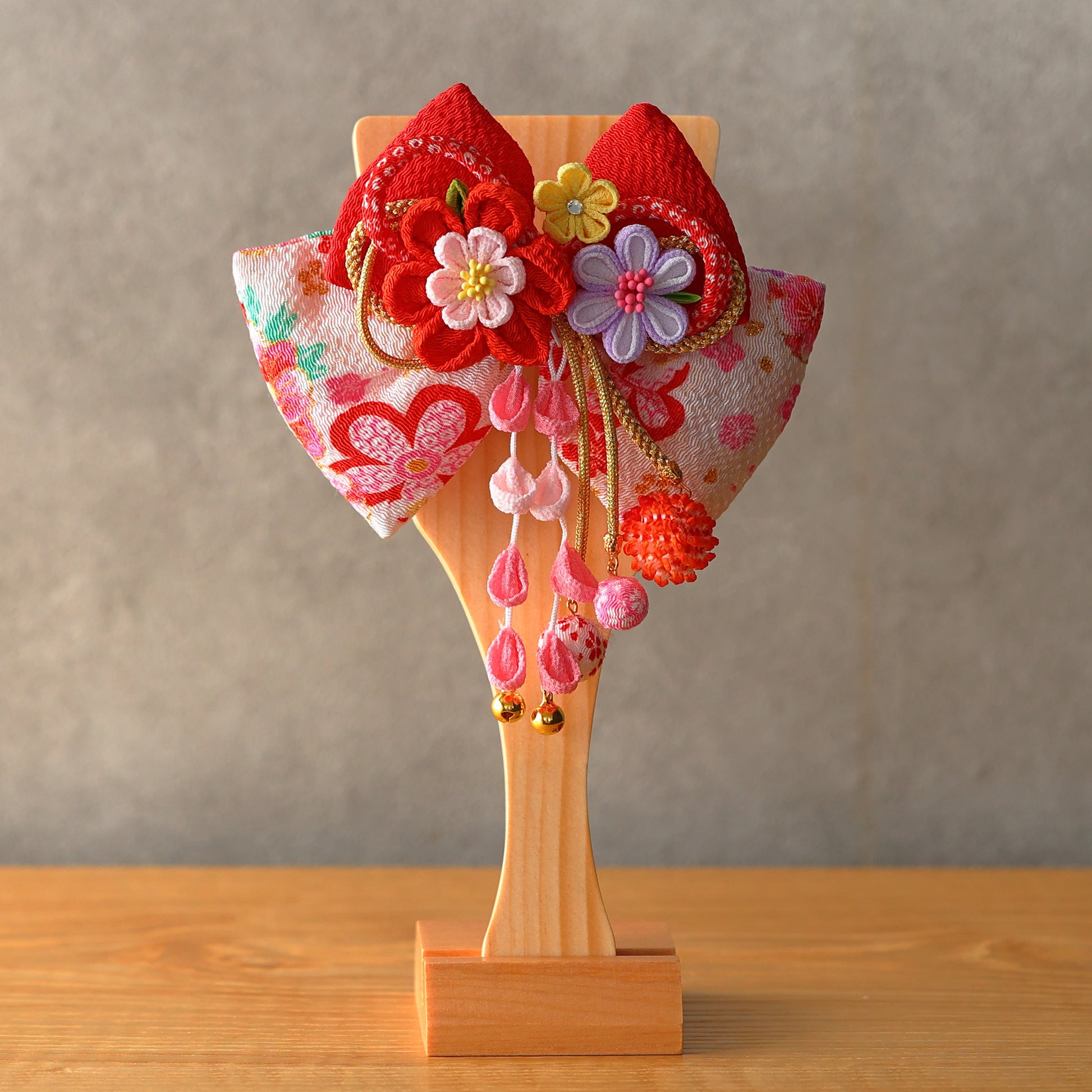 ちりめん髪飾り羽子板 板立飾り 赤色