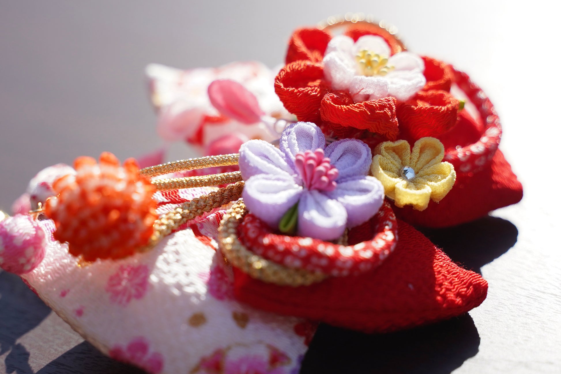 ちりめん髪飾り(手作りの為、若干の誤差があります)
