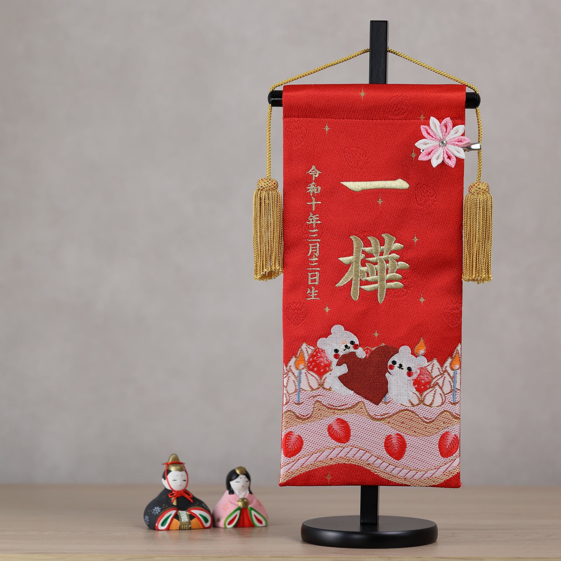 クマとケーキ 可愛いイチゴの名前旗 (大) スタンドセット