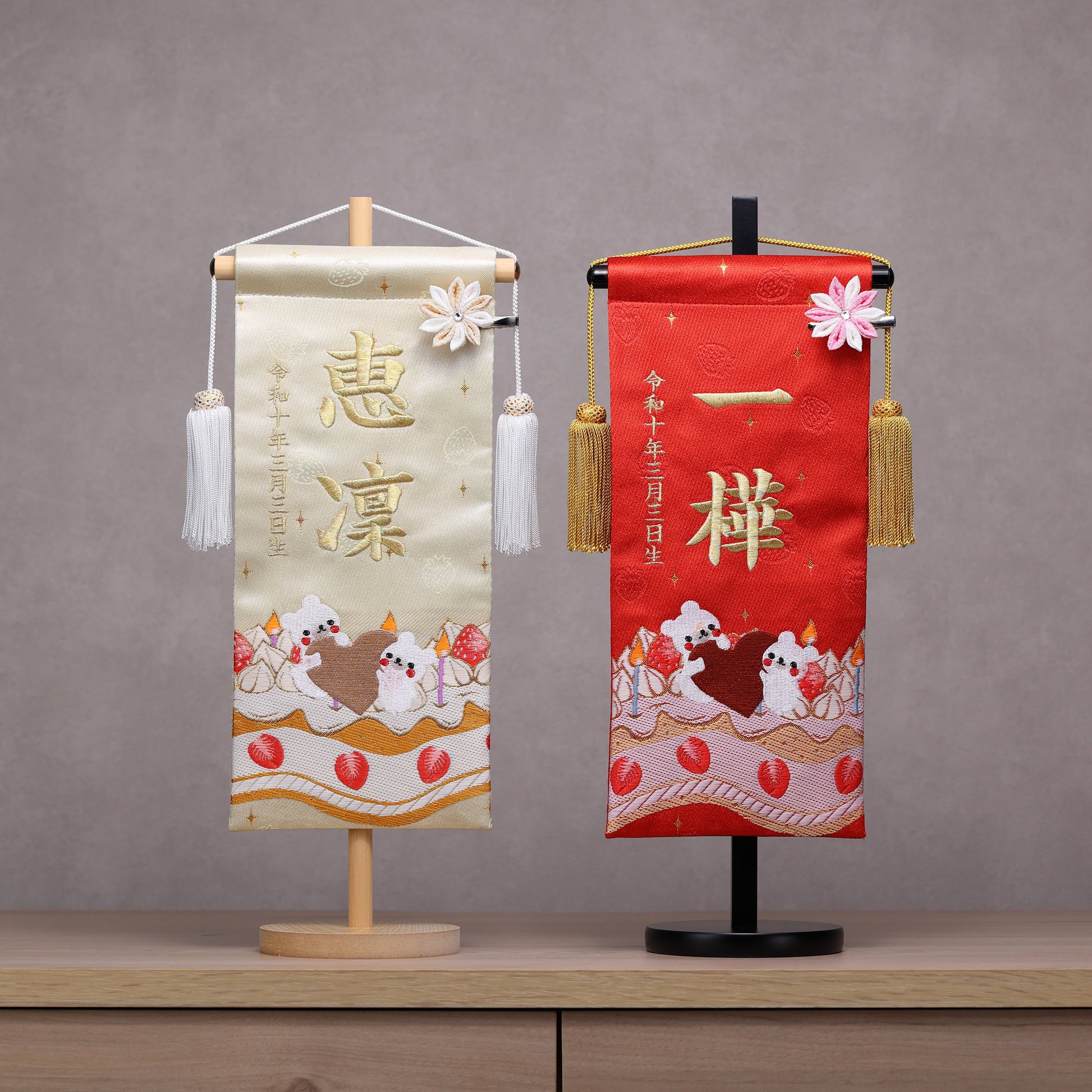 柔らかなベージュトーンと上品な光沢感が、お雛様飾りや初節句の空間を明るく彩り、