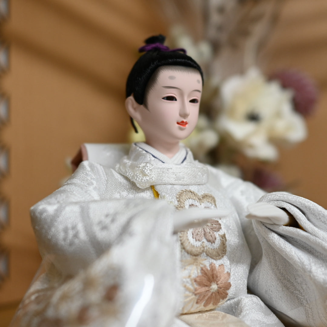 姫の髪が乱れたり癖がついた場合は、まず手で優しく整えてください。それでも改善しない場合は、人形から少し離した距離で蒸気を当て、髪がまっすぐになるよう整えてください。その際、お顔や衣裳・金属部分には蒸気が直接当たらないようにご注意ください。また、作業中のやけどには十分ご注意ください。
