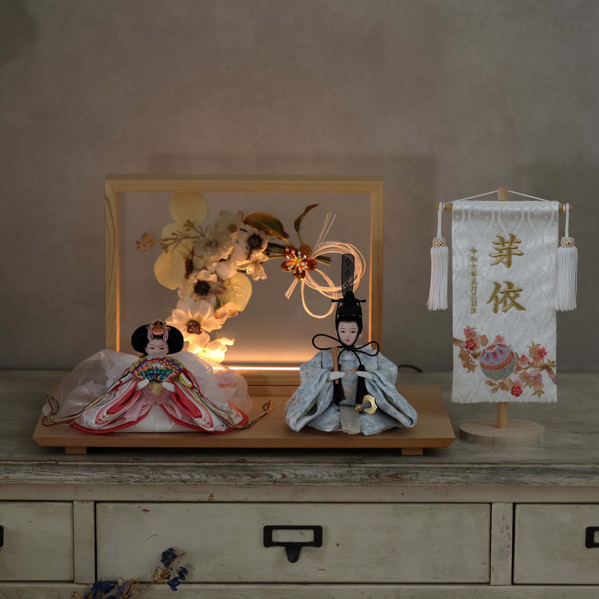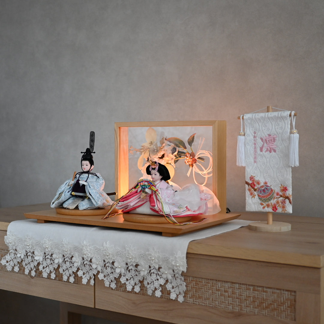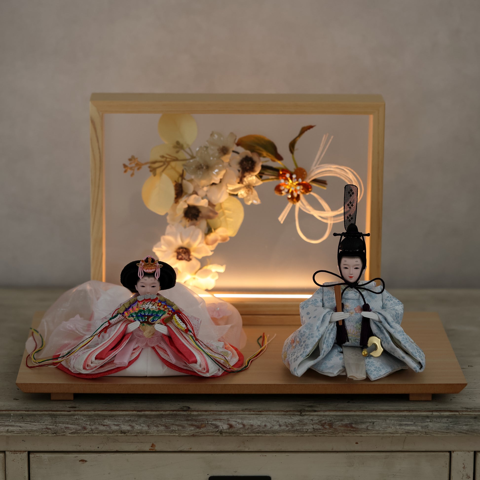 インテリア感覚で飾れる新しいスタイルの雛人形です。